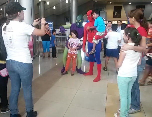 Disfrutaron tomarse fotos con los personajes de la película de Spiderman.